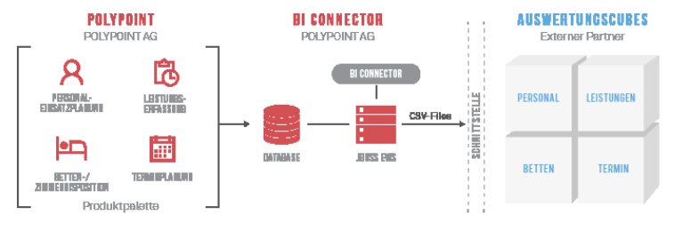 Der BI-Connector kommt zum Einsatz, wenn ein Schnittstellenpartner grosse Mengen POLYPOINT-Daten regelmässig abrufen will.